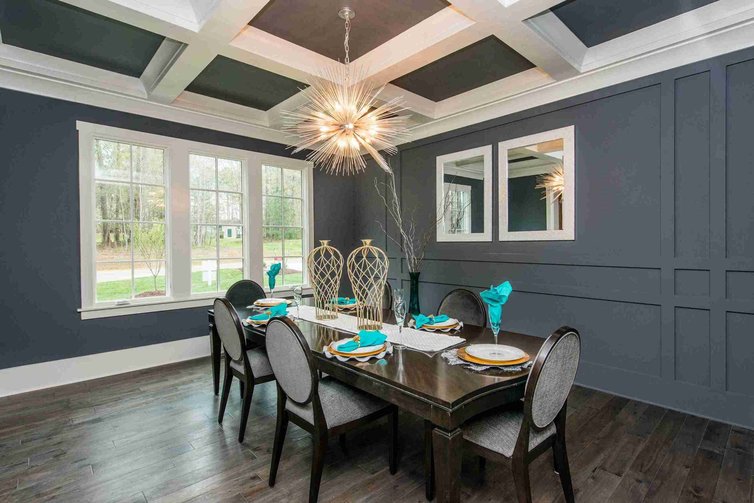 Situated on a beautifully landscaped lot surrounded by mature trees, 1105 Easterly Court offers a peaceful retreat from the bustle of the city. The design prioritizes a seamless connection with nature, featuring large windows that flood the interior with natural light and offer serene views of the lush greenery. The expansive concrete driveway and professional landscaping with dark mulch beds provide a grand approach, making the property an ideal space for both high-end entertaining and quiet family life in a private, wooded setting.
