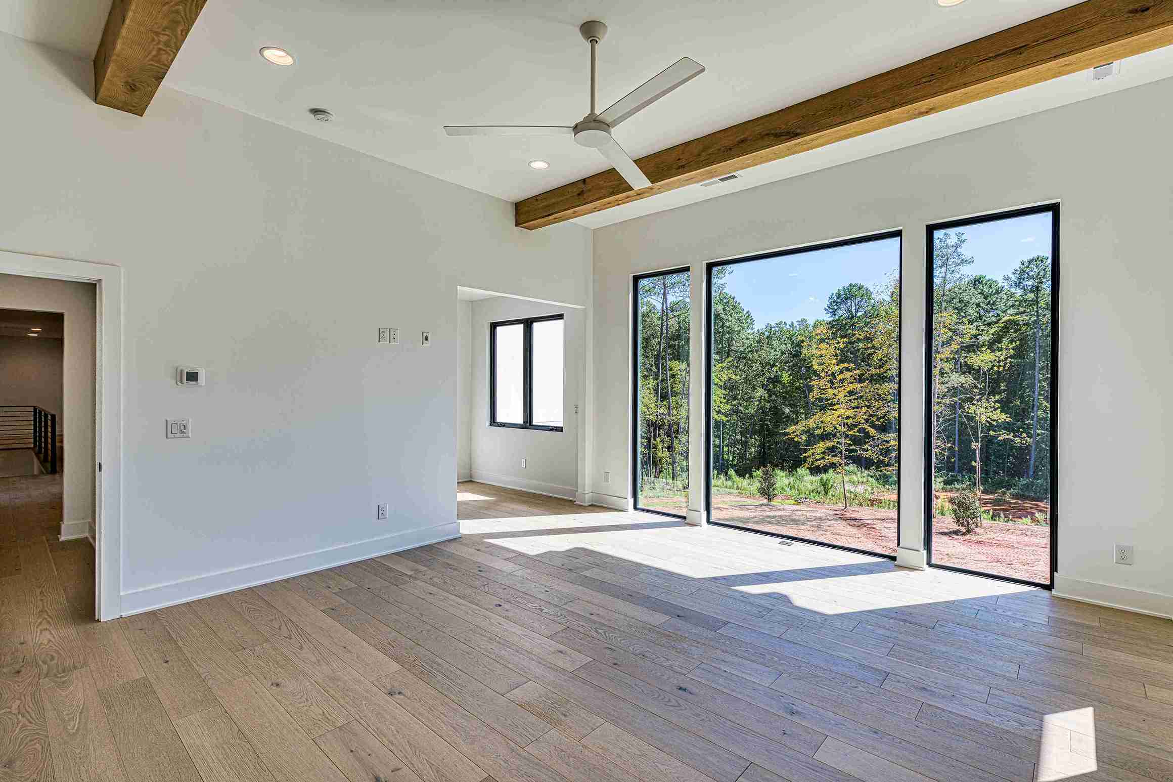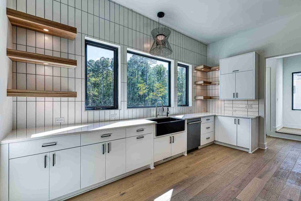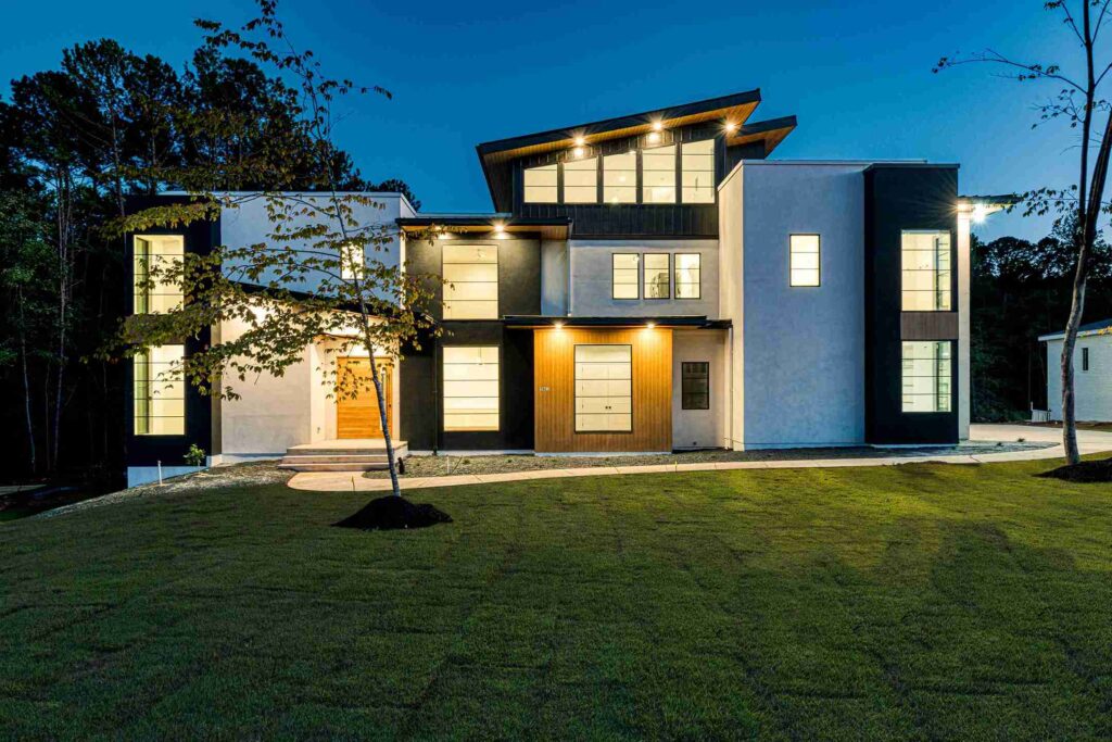 A defining feature of this modern masterpiece is the extensive use of floor-to-ceiling windows and large glass panels that blur the boundaries between indoor comfort and the natural world. These oversized windows are strategically positioned to flood the interior with natural light throughout the day, highlighting the high-volume ceilings and premium finishes within. The design prioritizes a bright, airy atmosphere that celebrates modern aesthetics and provides an uplifting environment for daily living.