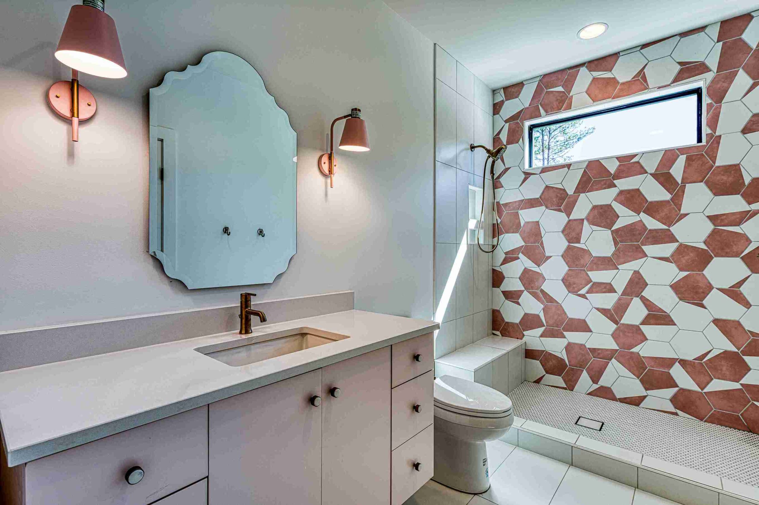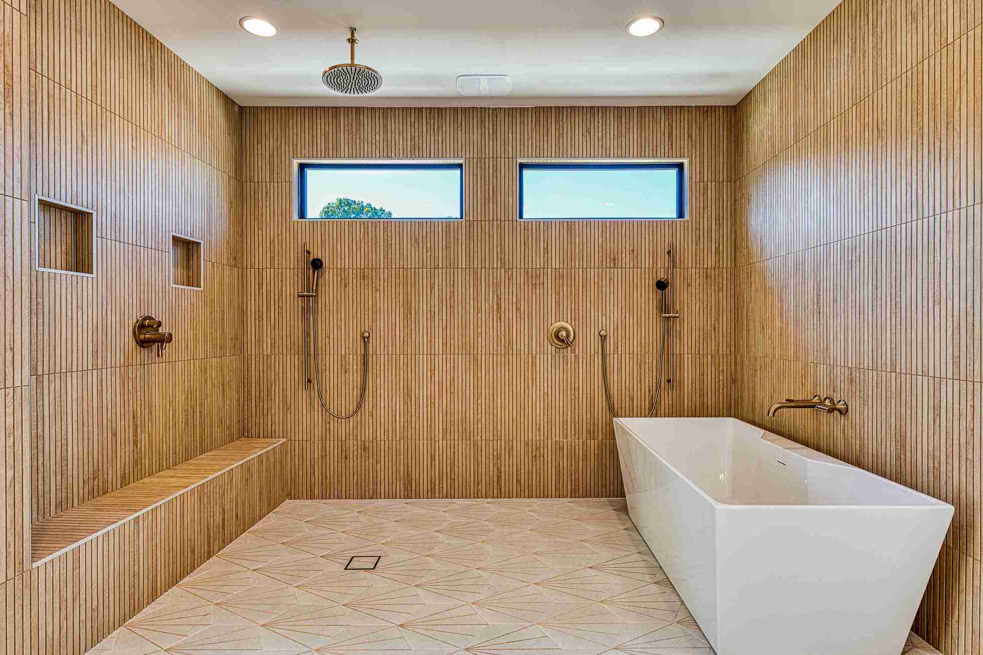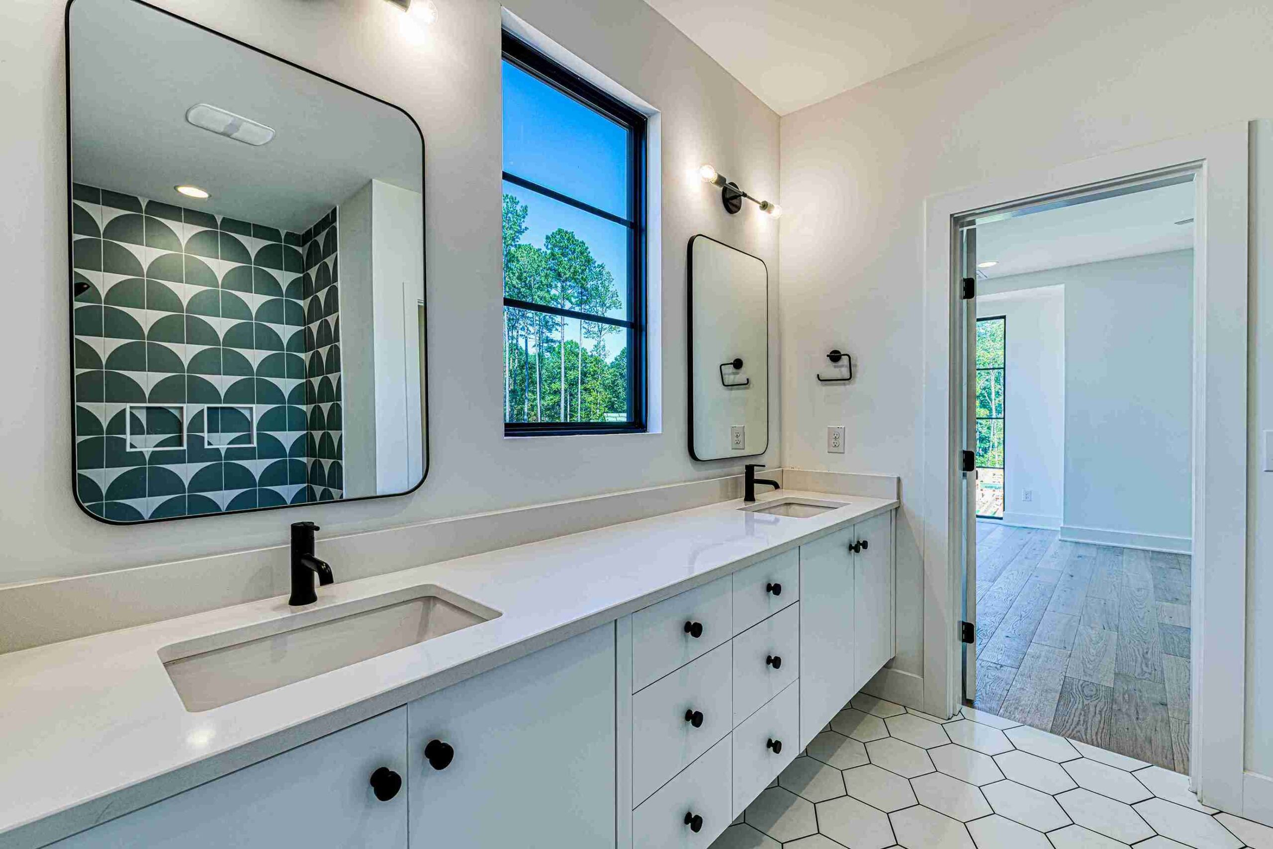 The exterior of Lot 9 Bella Terra is characterized by its dynamic use of mixed materials and geometric forms. The interplay between the clean white masonry, dark vertical accents, and natural wood textures creates a striking visual profile that commands attention. Every architectural line has been meticulously planned by Shail Construction to ensure maximum curb appeal while maintaining the structural integrity and high-performance standards of a custom luxury build.